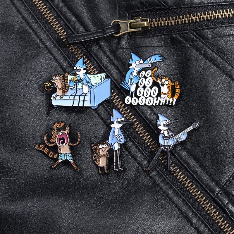 "Regular Show" TV Series Merchandise! Adorable Blue Jay/Raccoon-Shaped Cartoon Lapel Pin, Animal-Themed Badge, Showcase Your Unique Charm!